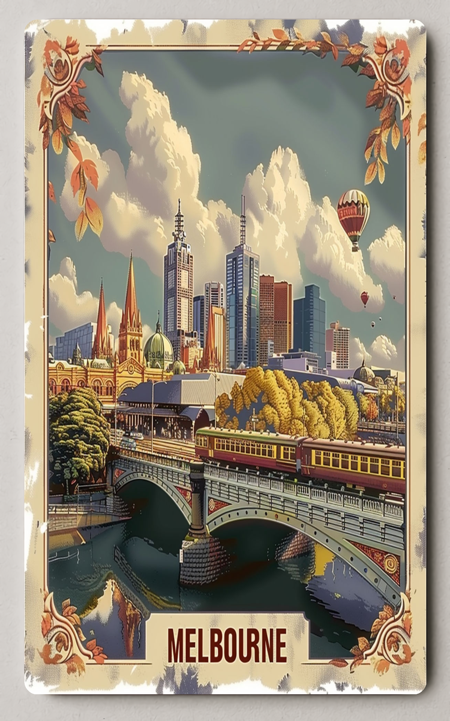 Melbournes Nostalgic Cityscape With Vintage Trading Card