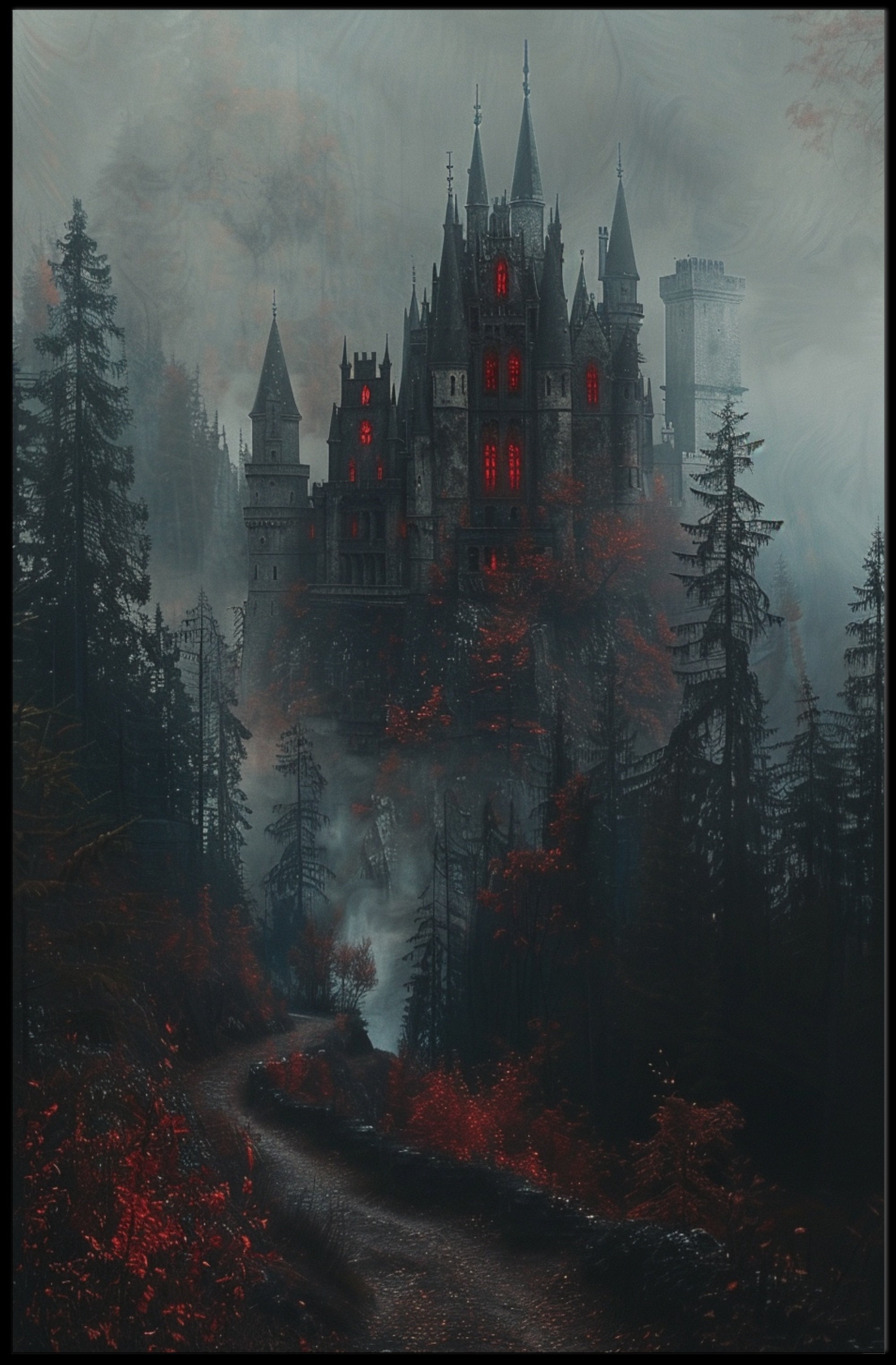 Mysterious Cloaked Figure in Gothic Stone Corridor