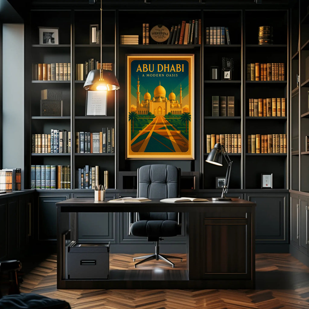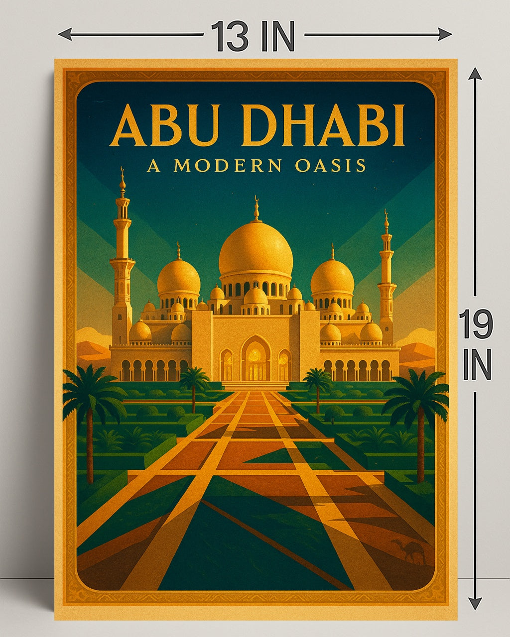 Whether you're curating a travel-inspired gallery wall or searching for a statement poster that blends cultural heritage with modern design, this Abu Dhabi travel poster creates a luxurious, inviting atmosphere. Add this elegant piece to your space today and transform any room into a modern oasis.