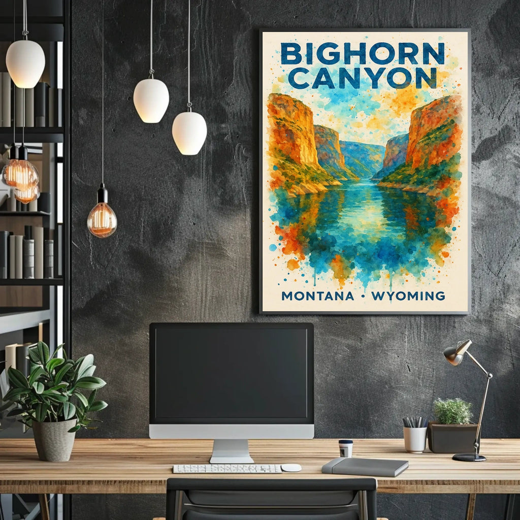 Bighorn Canyon Watercolor Art Poster: Adventure Awaits