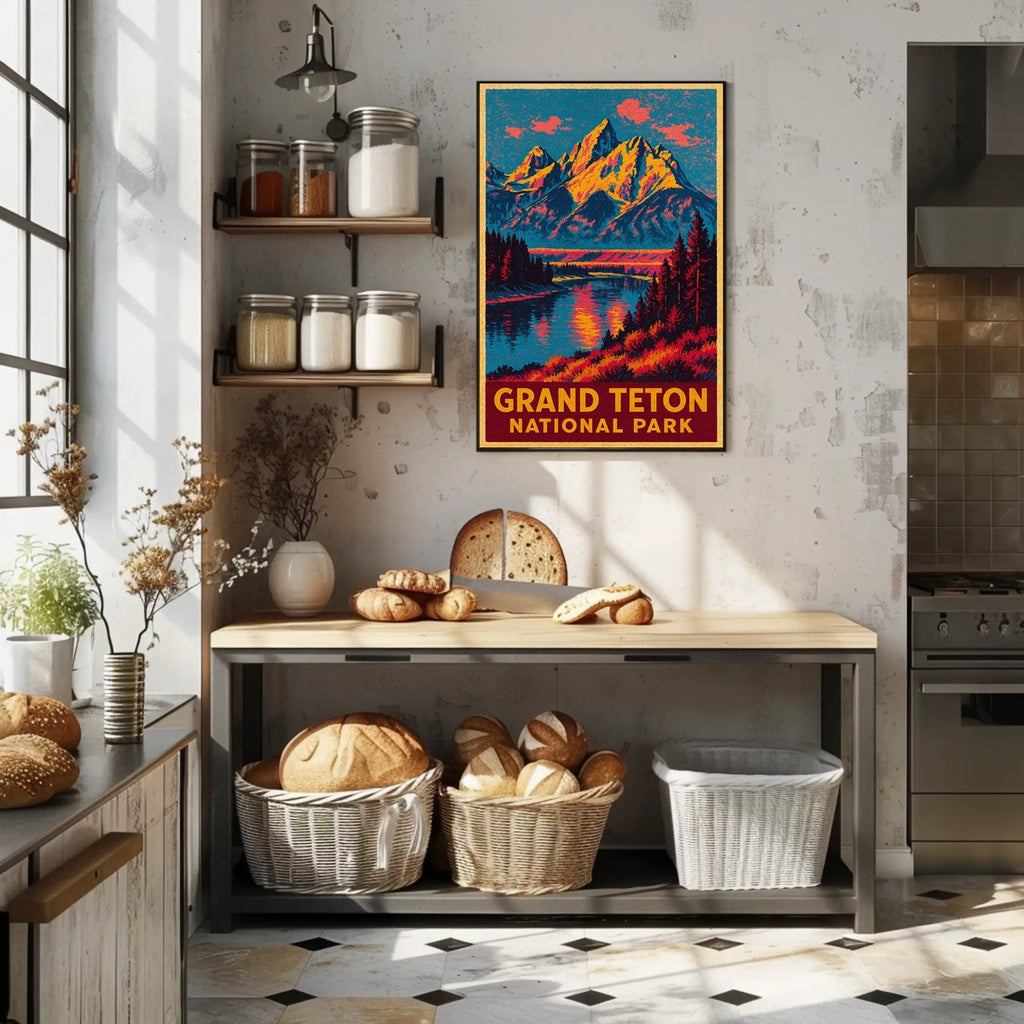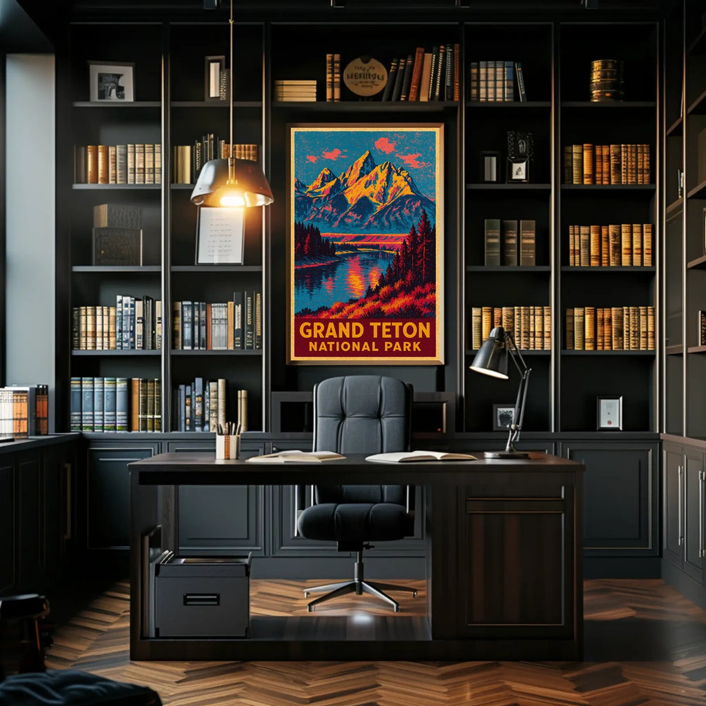 Its bold colors and nostalgic charm make it a standout piece of nature wall decor—perfect for living rooms, offices, classrooms, or any space that craves a touch of outdoor exploration and timeless style. This Grand Teton National Park poster blends adventure art with classic travel art to create a conversation-worthy centerpiece that celebrates the Tetons and the spirit of discovery.