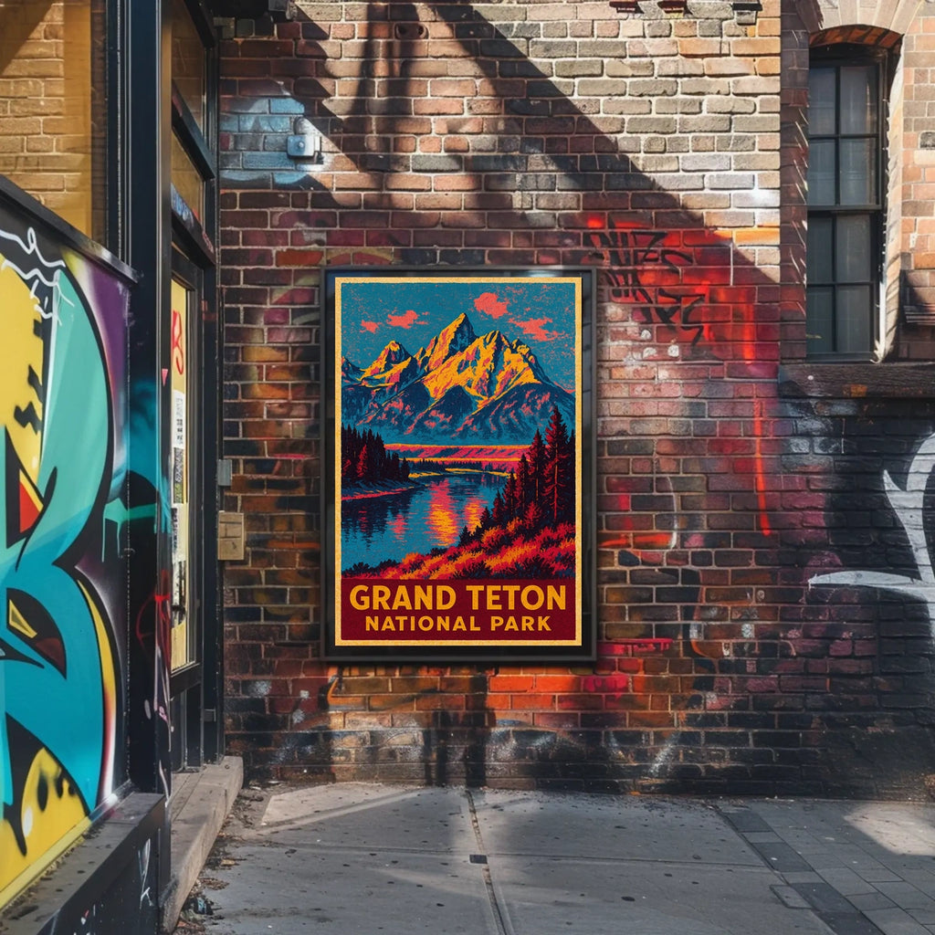 Bring Grand Teton Vintage Travel Poster: Majestic Mountain Scene into your home, classroom, or office today and let your walls tell a powerful story.