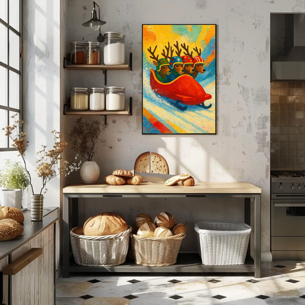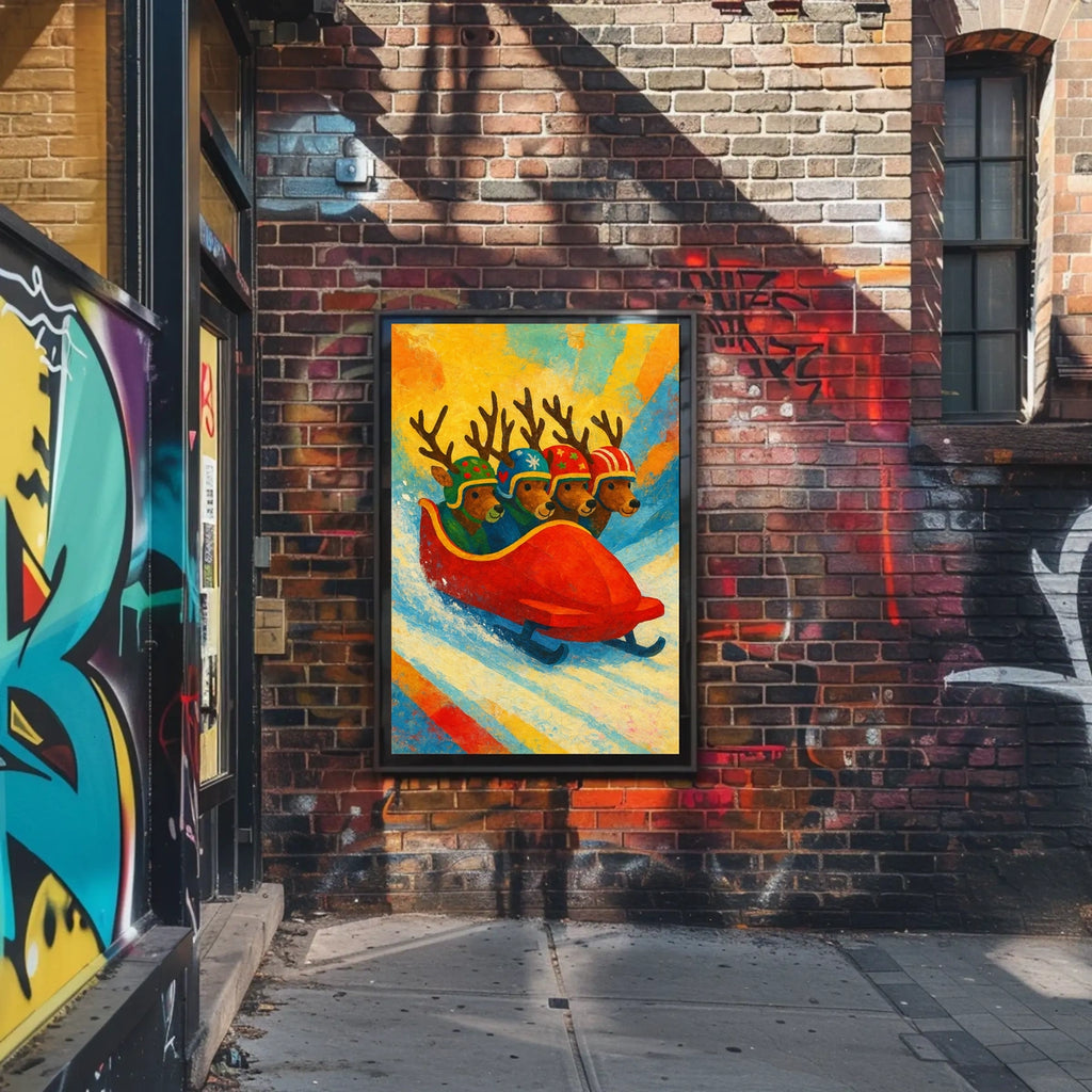 Reindeer Bobsled Adventure Poster captures the essence of Reindeer Bobsled Adventure. Designed for decor lovers and wanderlust spirits, this art print adds charm to any room with visuals inspired by real-world scenery.