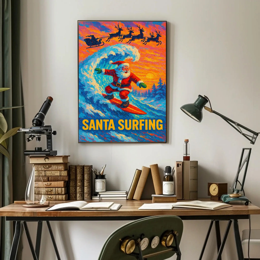 Printed with precision and made to inspire, this artwork is more than decoration—it’s a conversation piece that connects holiday magic, coastal vibes, and festive style. Bring Santa Surfing Poster: Festive Beach Adventure Art into your home, classroom, or office today and let your walls tell a playful story.