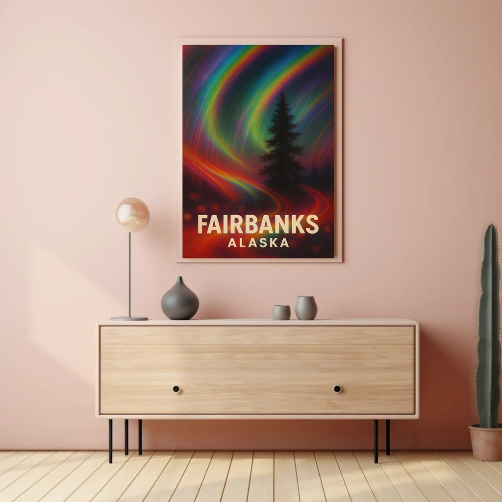 This poster captures the essence of Fairbanks, Alaska Northern Lights. Designed for decor lovers and wanderlust spirits, this art print adds charm to any room with visuals inspired by real-world scenery.