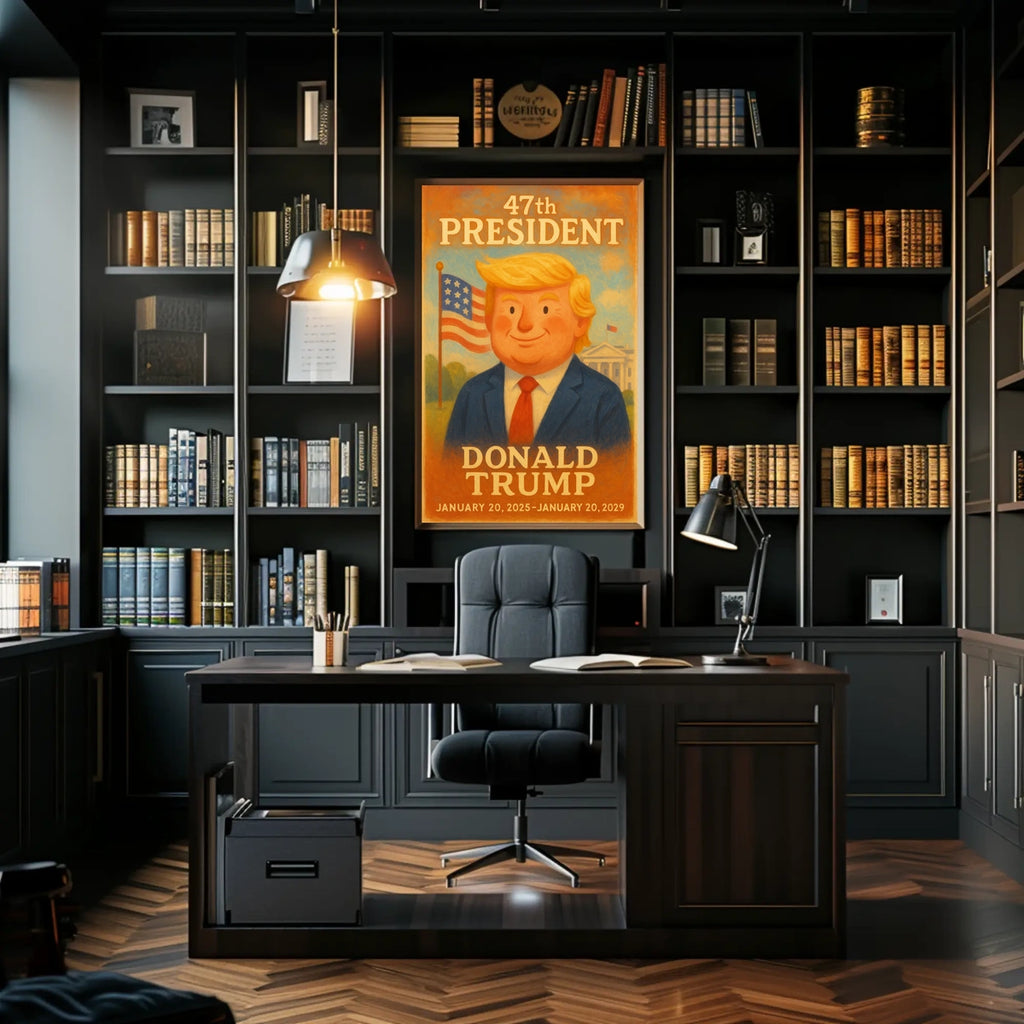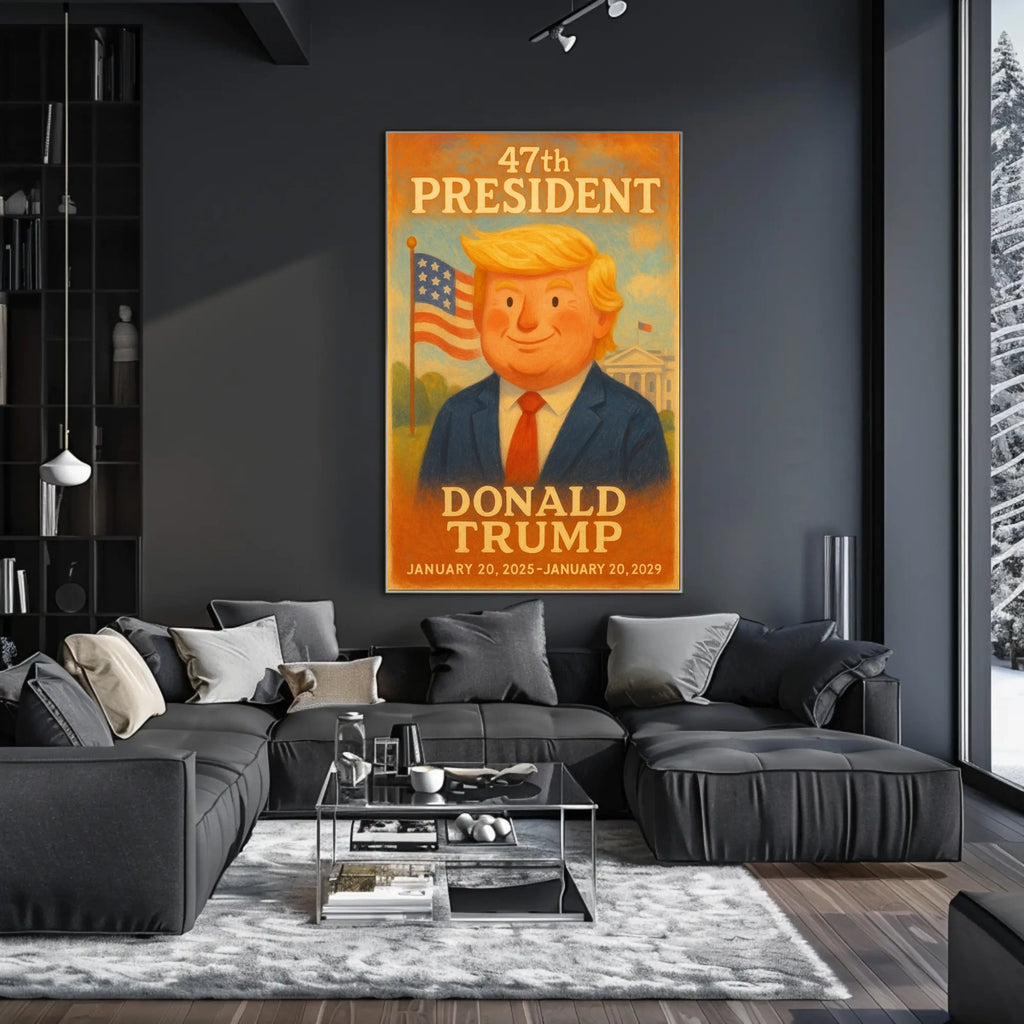 Celebrate the beauty of Donald Trump A Vision of Hope and Unity Poster with this timeless wall art. Designed to capture its unique appeal, this piece is perfect for collectors, enthusiasts, or anyone who wants to bring meaning and inspiration into their space. This artful piece captures President Donald Trump with a warm smile, dressed in his iconic suit and red tie, set against the majestic White House and a proudly waving American flag. The warm, painterly style brings a touch of nostalgia, evoking resilience and determination.