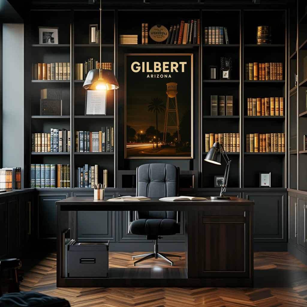 Gilbert Arizona Nighttime Landmark Realism Timeless Poster