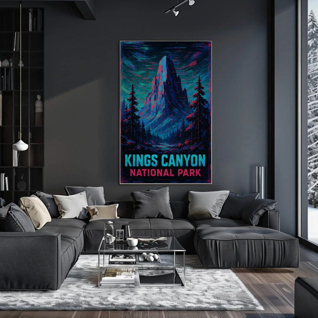 This poster captures the essence of Kings Canyon National Park. Designed for decor lovers and wanderlust spirits, this art print adds charm to any room with visuals inspired by real-world scenery.