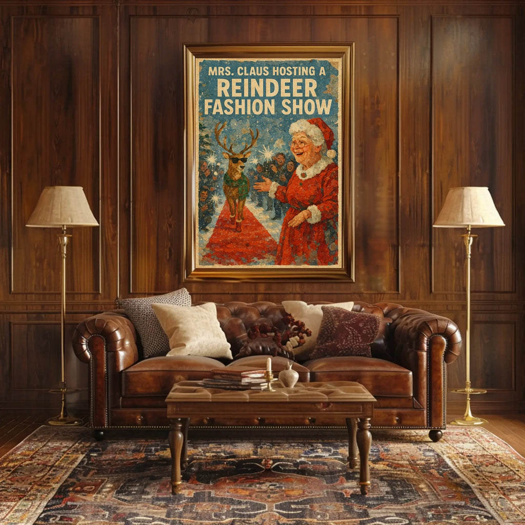 - Printed with precision and made to inspire, this artwork is more than decoration—it’s a conversation piece that connects history, culture, and style. Bring Mrs. Claus Reindeer Fashion Show Vintage Artistic Poster into your home, classroom, or office today and let your walls tell a powerful story
