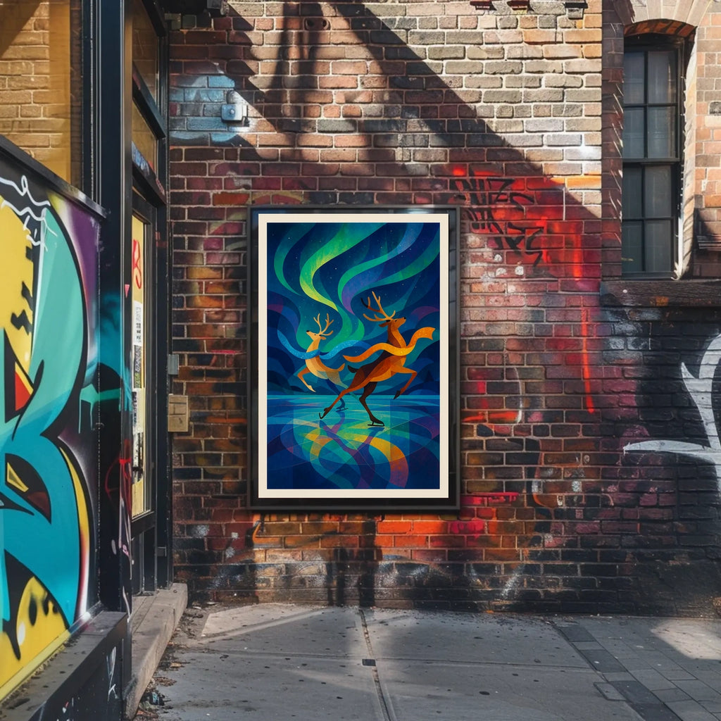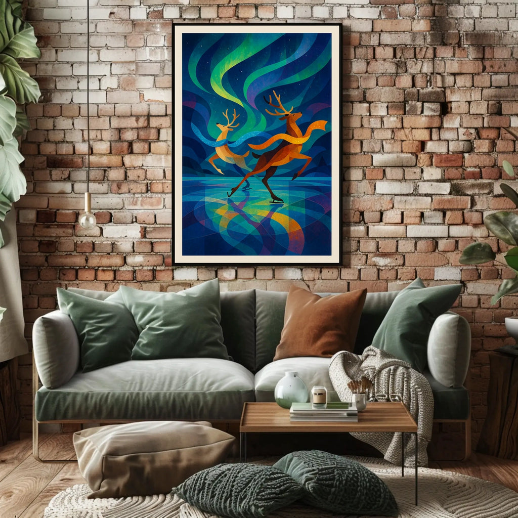 - Printed with precision and made to inspire, this artwork is more than decoration—it’s a conversation piece that connects wildlife, winter, and wonder. Bring the Reindeer Ice Skate Northern Lights Poster into your home, classroom, or office today and let your walls tell a powerful story.