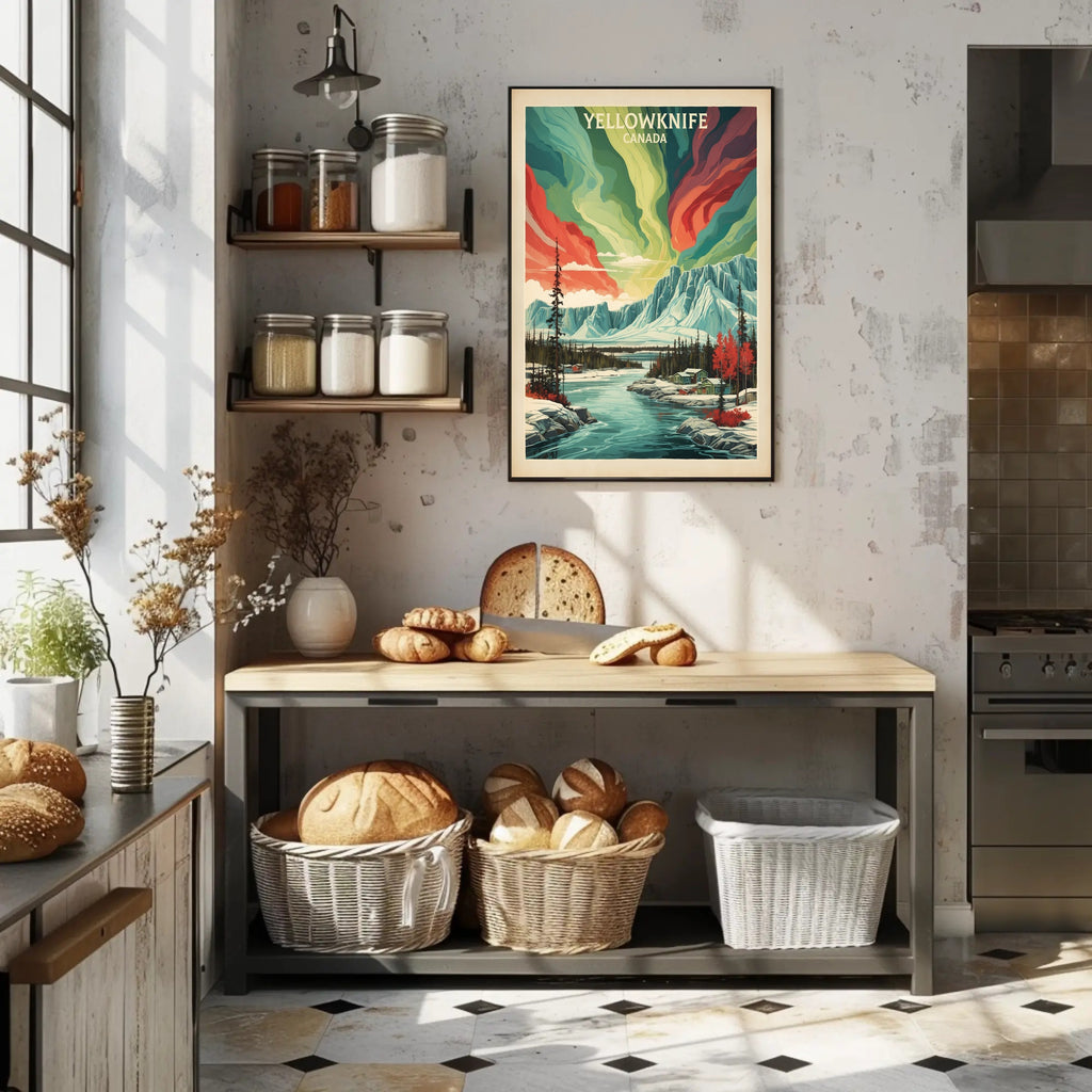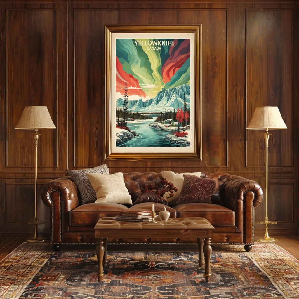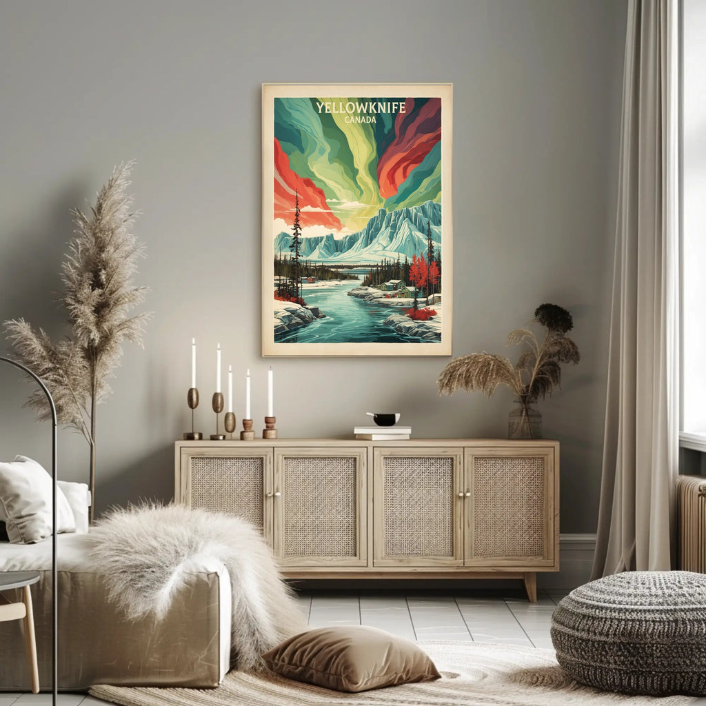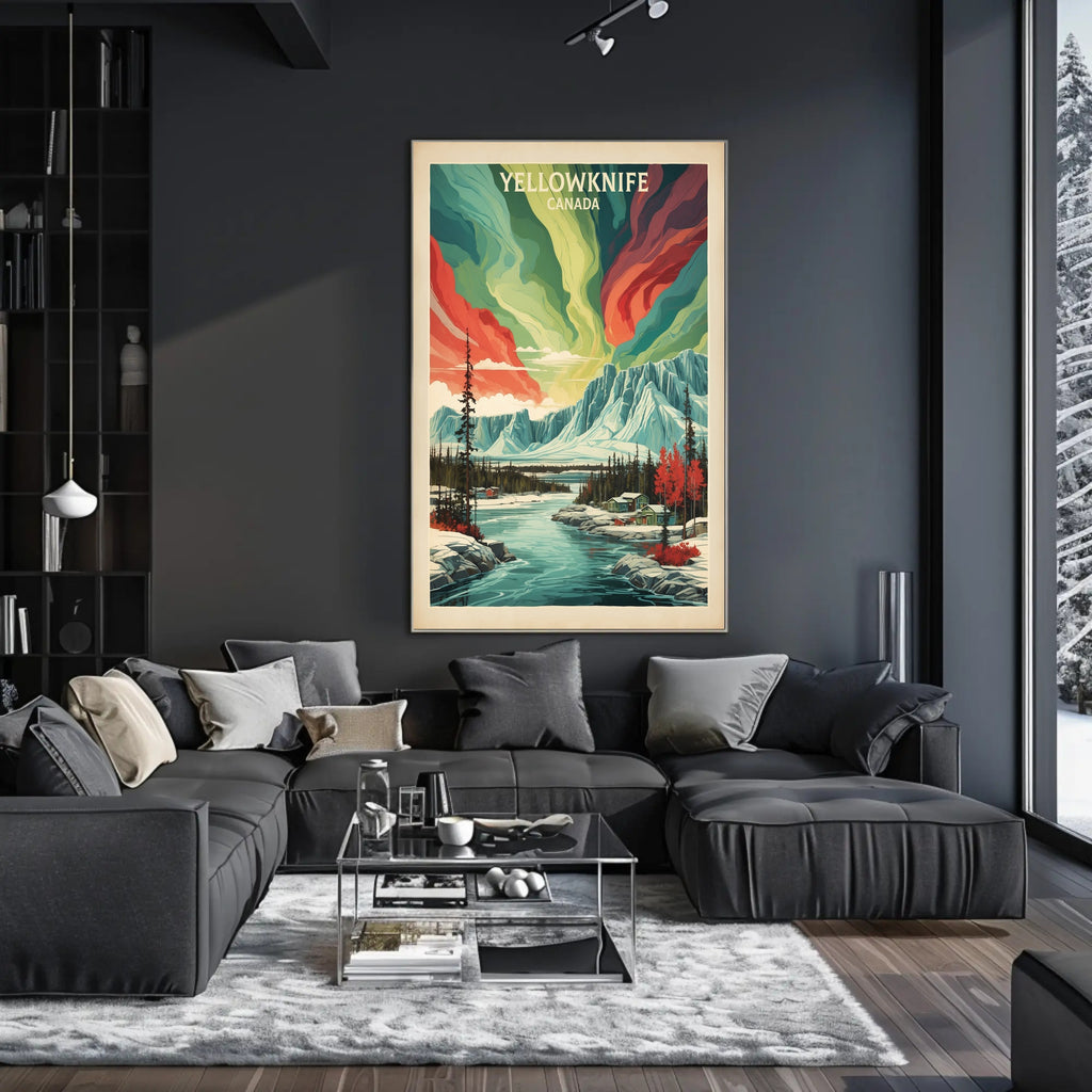 Bring the enchantment of Yellowknife’s aurora borealis decor into your space — this scenic travel poster makes a memorable gift for nature lovers, photographers, and anyone who treasures iconic Canadian landscape art.