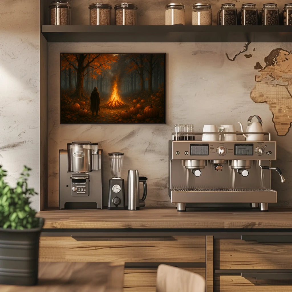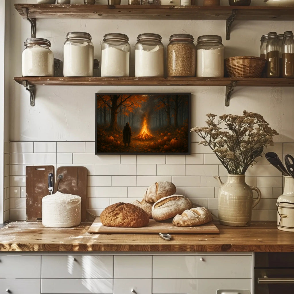 Autumn Bonfire Woods Watercolor Cozy Poster