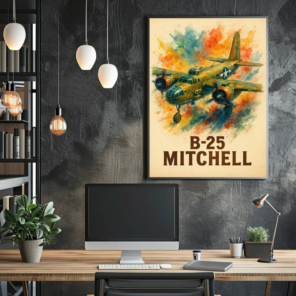 Bring the B-25 Mitchell WWII Vintage Aviation Art Poster into your home, classroom, or office today and let your walls tell a powerful story.