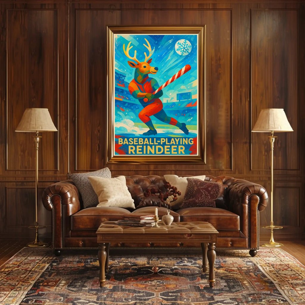 Baseball-Playing Reindeer Poster captures the essence of Baseball-Playing Reindeer. Designed for decor lovers and wanderlust spirits, this art print adds charm to any room with visuals inspired by real-world scenery.