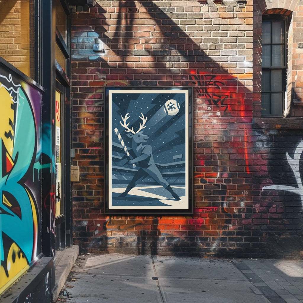 This art print blends the charm of winter with the thrill of baseball, creating a scenic and imaginative poster that can elevate any room. Whether you’re decorating a living area, a study, or a classroom, it adds character and a sense of adventure.