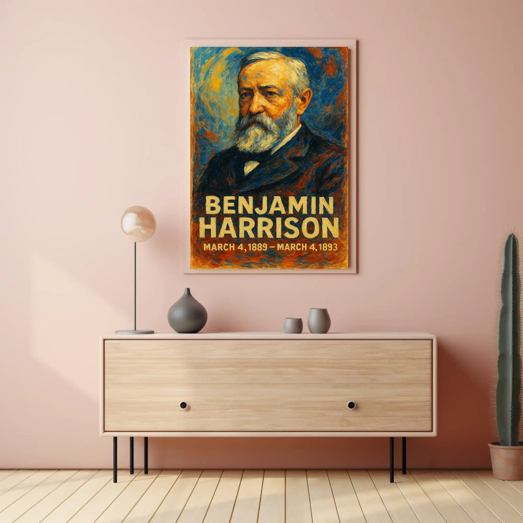 - Printed with precision and made to inspire, this artwork is more than decoration—it’s a conversation piece that connects history, culture, and style. Bring the Benjamin Harrison Poster into your home, classroom, or office today and let your walls tell a powerful story.