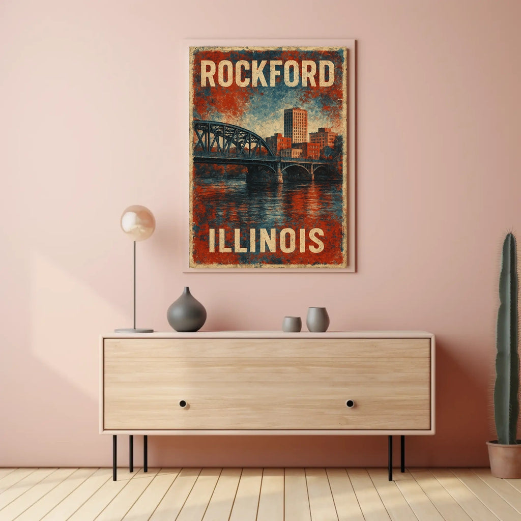 Ideal for lovers of vintage aesthetics, this poster serves as a perfect decorative piece to celebrate Rockford's storied past.