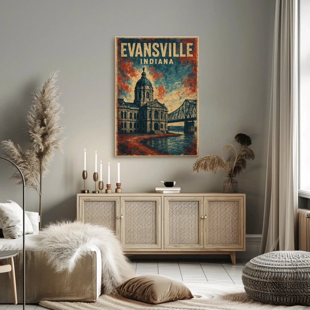 This poster captures the essence of Evansville, Indiana. Designed for decor lovers and wanderlust spirits, this art print adds charm to any room with visuals inspired by real-world scenery.