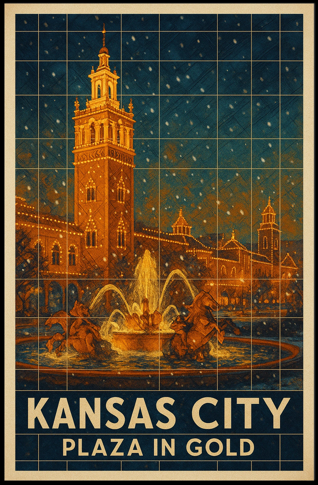 Detailed design highlighting the golden tones and iconic Kansas City Plaza landmarks