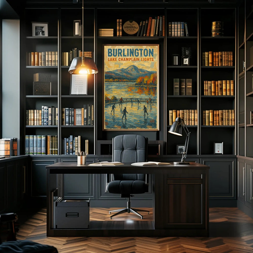 This poster serves as a timeless piece for any space, blending the beauty of Burlington with the tranquil charm of the lake. A perfect scenic souvenir, it enhances living rooms, bedrooms, offices, or hallways with warm tones, subtle glow, and a touch of wanderlust—a true gift for both seasoned collectors and new art enthusiasts.