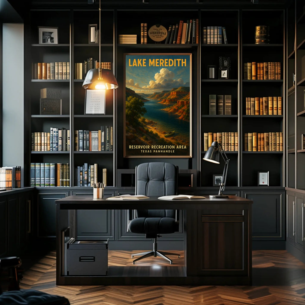 This poster captures the essence of Lake Meredith Reservoir Recreation Area, a vision inspired by real-world scenery.