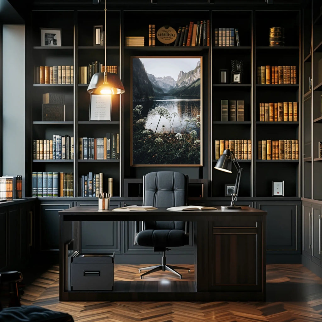 Serene Alpine Lake Photorealistic Nature Poster Art