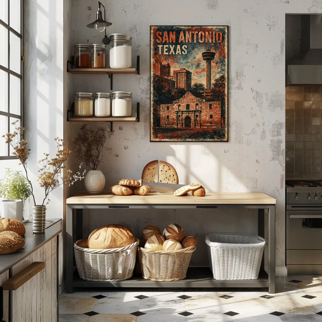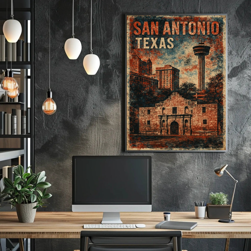 Ideal for travelers, history buffs, or Texas enthusiasts, this vintage travel poster adds a bold, timeless touch to any space and makes a standout addition to texas wall decor or san antonio poster collections.