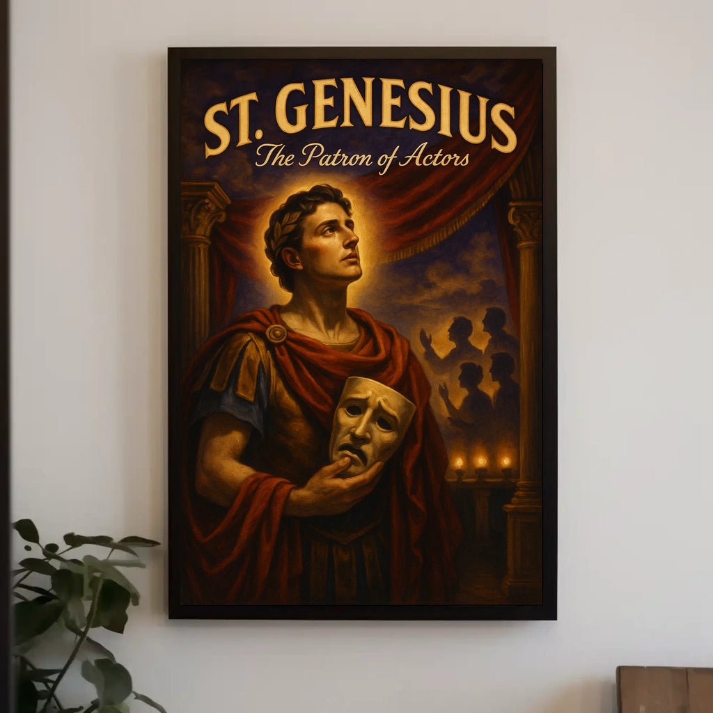 Intro: This poster celebrates St. Genesius, the patron of actors, blending reverent iconography with modern wall art. Perfect for theater lovers and decor enthusiasts, it adds character to any room while inspiring creativity and conversation.