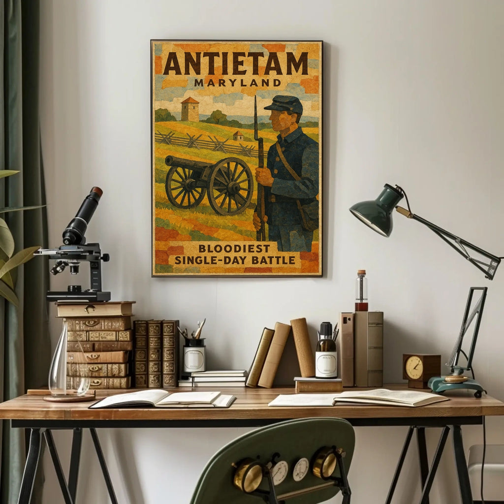 Conversation piece that connects history, culture, and style. Bring Antietam, Maryland Bloodiest Single-Day Battle into your home, classroom, or office today and let your walls tell a powerful story