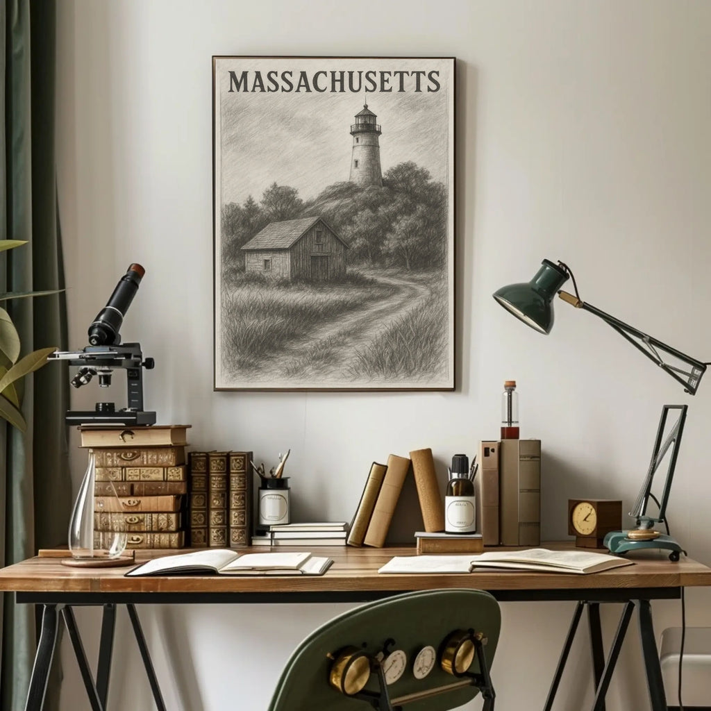 Conversation-starting art that connects history, culture, and coastal style—bring the Massachusetts Lighthouse Scene into your home, classroom, or office today.