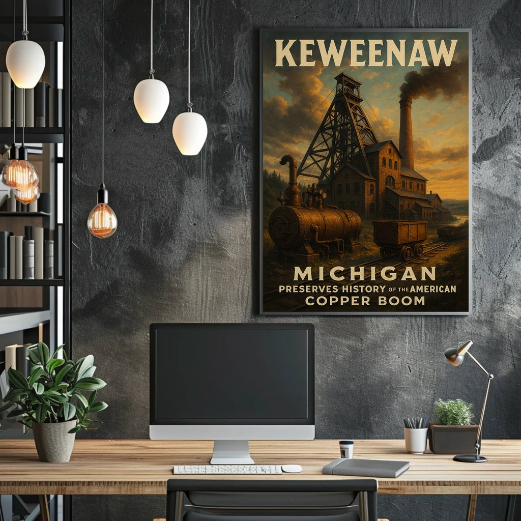Printed with precision and made to inspire, this artwork is more than decoration—it’s a conversation piece that connects history, culture, and style. Bring Michigan's Copper Boom into your home, classroom, or office today and let your walls tell a powerful story.