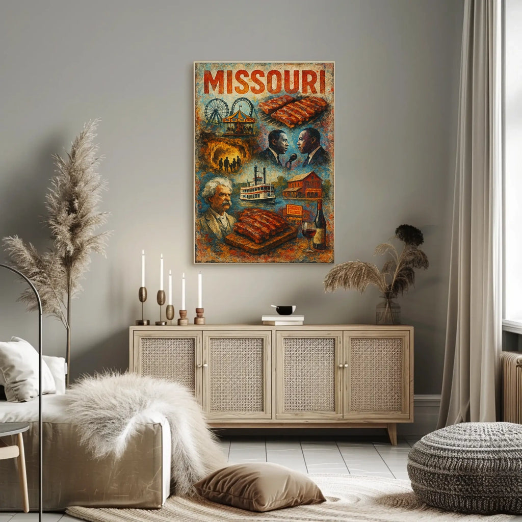 This poster captures the essence of Missouri A Tapestry of Culture and History. Designed for decor lovers and wanderlust spirits, this art print adds charm to any room with visuals inspired by real-world scenery.