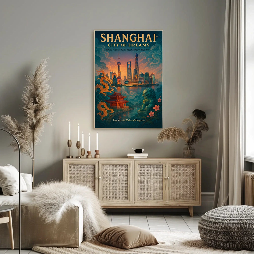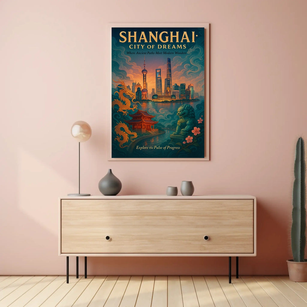 Enhance your space with an artful nod to Shanghai's city lights and cultural energy. This poster blends memory and aspiration into one statement piece—order today and invite dreamlike urban vibes to your walls.
