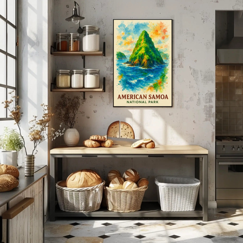 This poster captures the essence of American Samoa National Park. Designed for decor lovers and wanderlust spirits, this art print adds charm to any room with visuals inspired by real-world scenery.