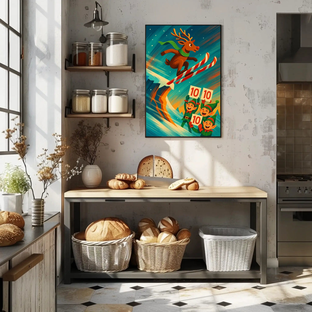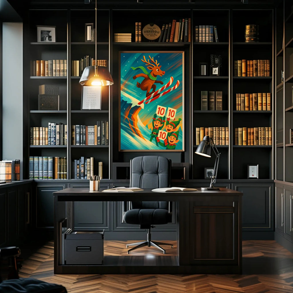 Bring Reindeer Ski Jump Extravaganza Poster into your home, classroom, or office today and let your walls tell a powerful story.