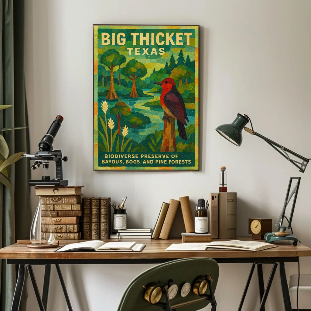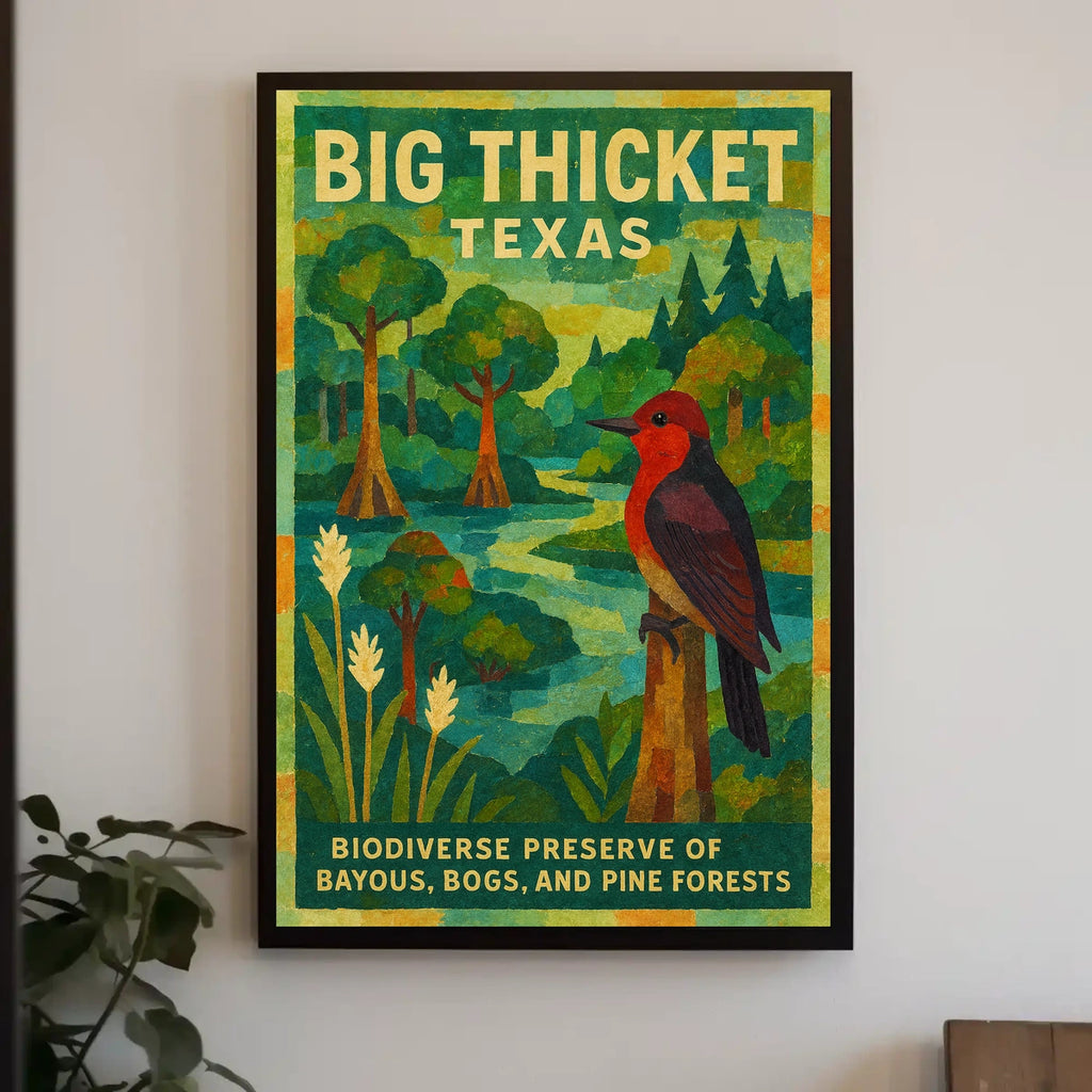 - Printed with precision and made to inspire, this artwork is more than decoration—it’s a conversation piece that connects nature, culture, and style. Bring Big Thicket, Texas into your home, classroom, or office today and let your walls tell a powerful story.