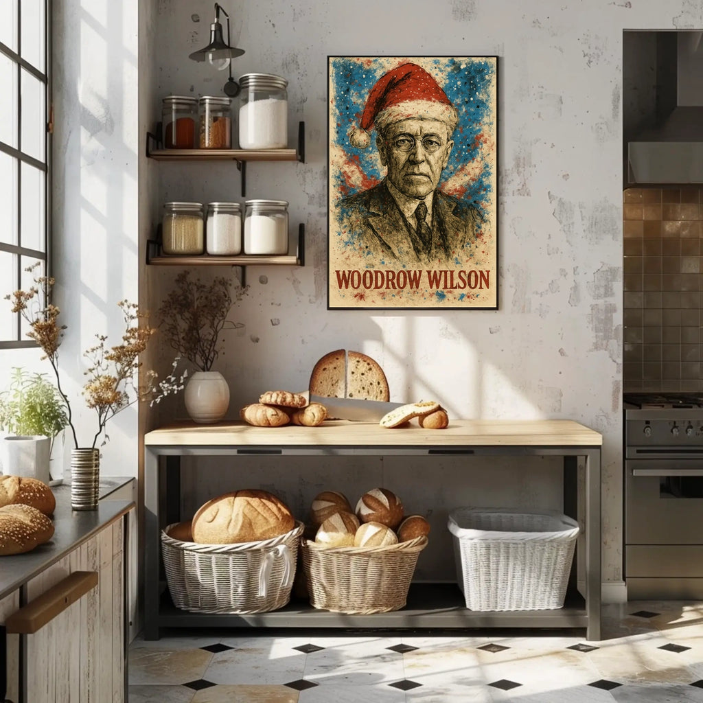 Whether you’re decorating a study, classroom, or living space, this Woodrow Wilson poster blends Americana with a timeless Christmas spirit—perfect for fans of history, politics, and vintage poster art.