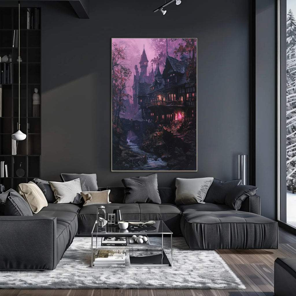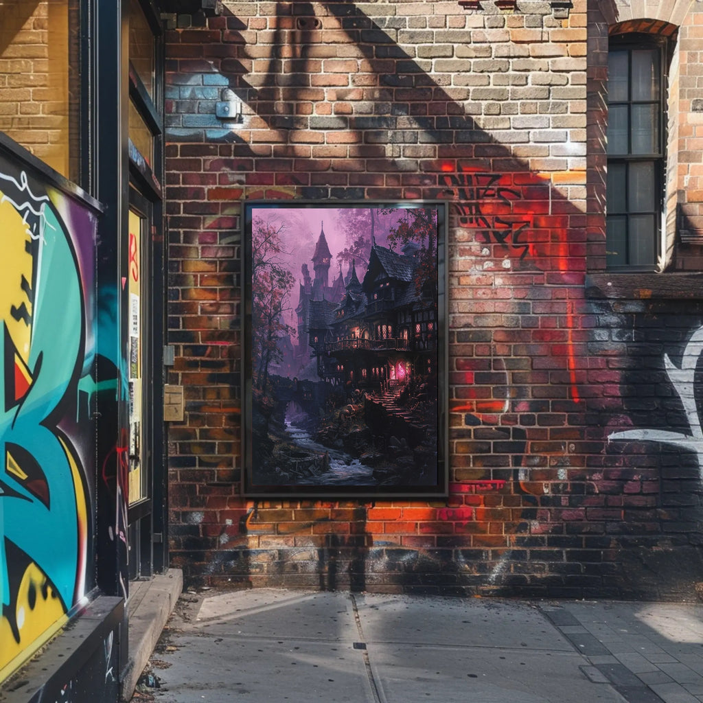 This Enchanted Twilight Village Poster is printed with attention to color depth and fine detail so the glowing windows and misty purple sky remain vivid on your wall. Add a touch of mystique to your home — order now from PosterGoat and bring a twilight village to life in your space.