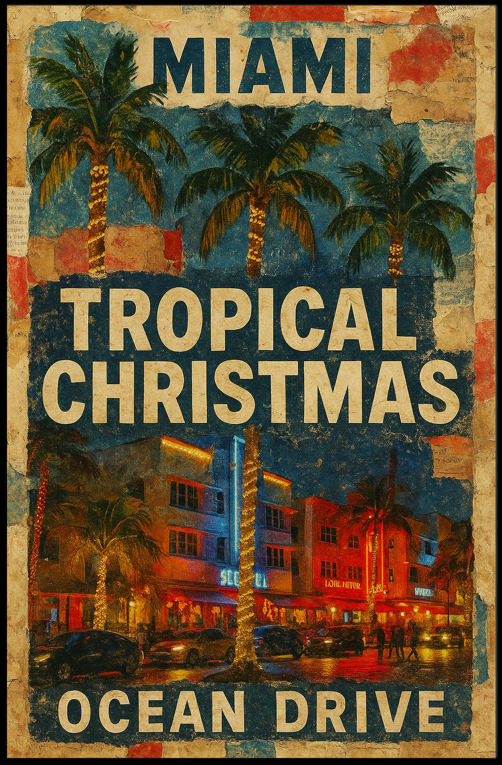 Miami Tropical Christmas Poster celebrates the sun-drenched magic of Miami during the holiday season. This timeless wall art is designed for decor lovers and wanderlust spirits, offering visuals inspired by real-world scenery to bring warmth, color, and character into any space.