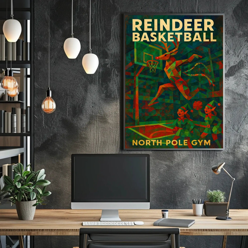 Printed with precision and made to inspire, this artwork is more than decoration—it’s a conversation piece that connects whimsy, sport, and season. Bring Reindeer Basketball at North Pole Gym into your home, classroom, or office today and let your walls tell a playful, heartfelt story.