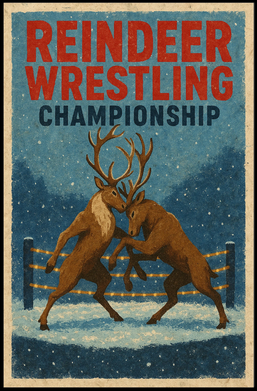 Printed with precision and made to inspire, this artwork is more than decoration—it’s a conversation piece that connects whimsy, winter nostalgia, and festive charm. Bring the Reindeer Wrestling Championship Vintage Winter Poster into your home, classroom, or office today and let your walls tell a playful story.