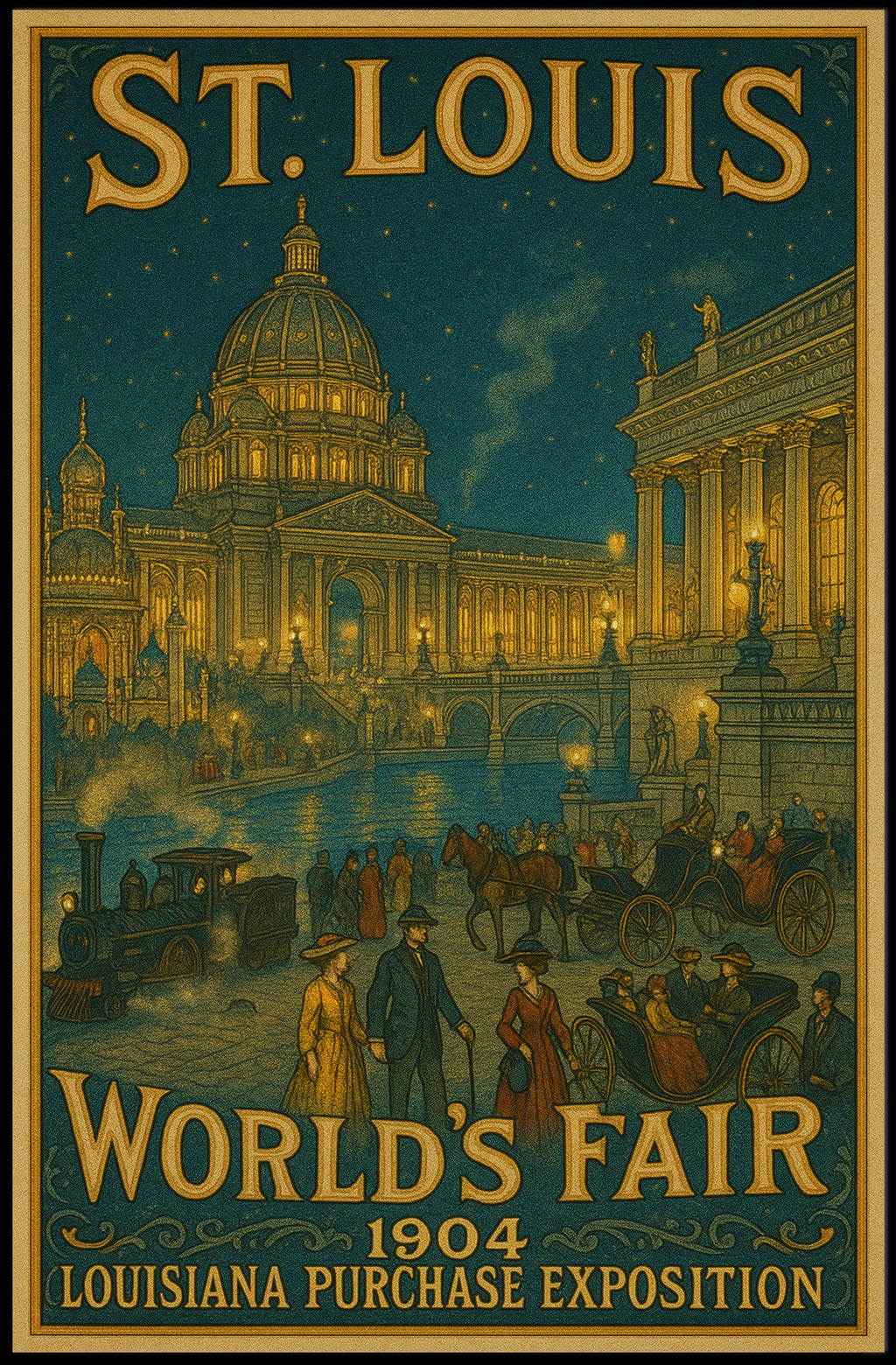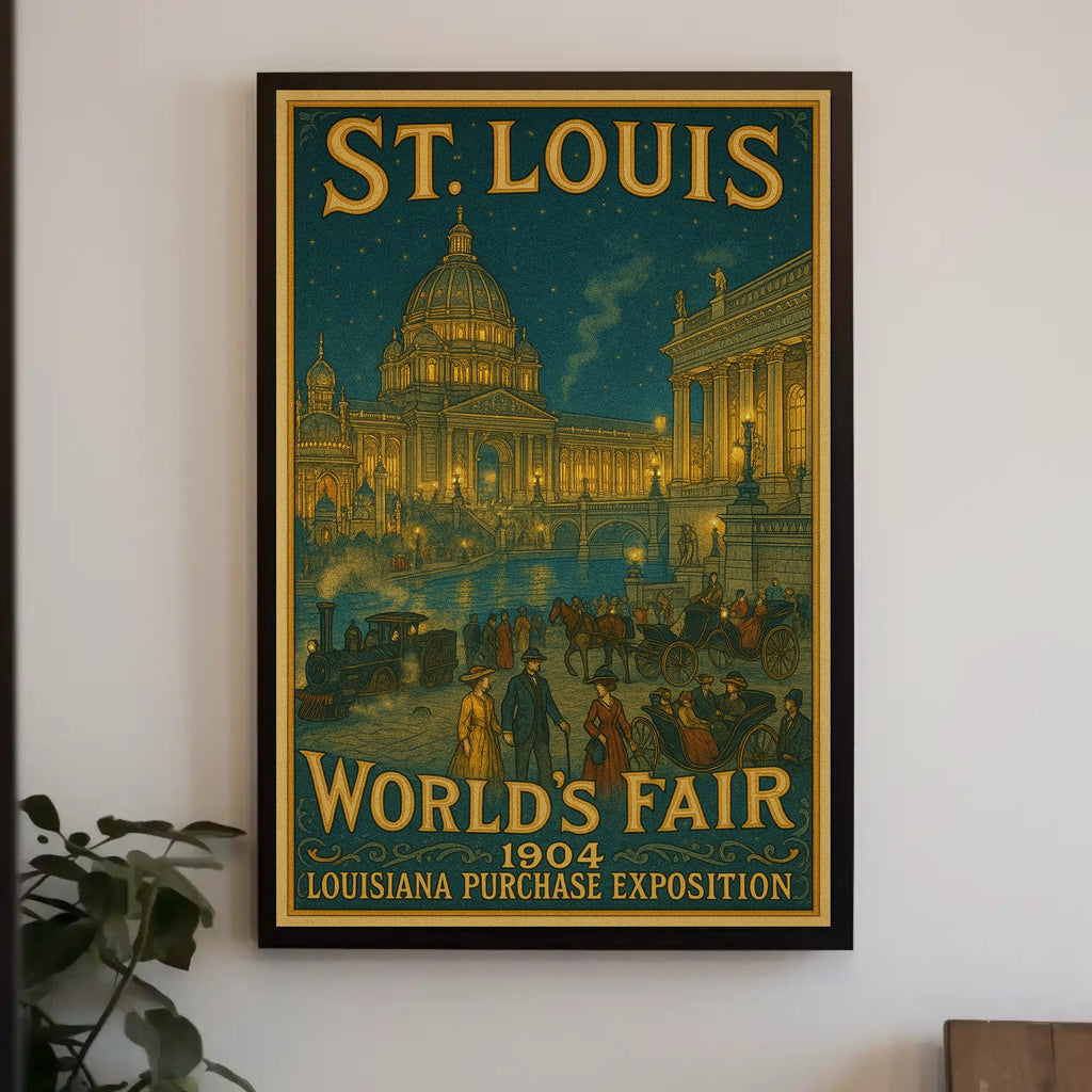Bring home a piece of the 1904 St. Louis World's Fair—add this grand vintage poster to your collection today and transform your space with history and elegance.