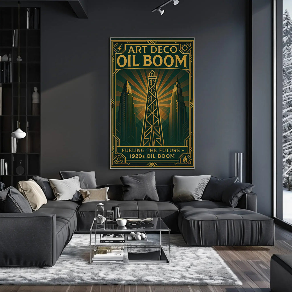 Bring history into your space — add the 1920s Art Deco Oil Boom poster by PosterGoat to your cart today and fuel your room with vintage style.