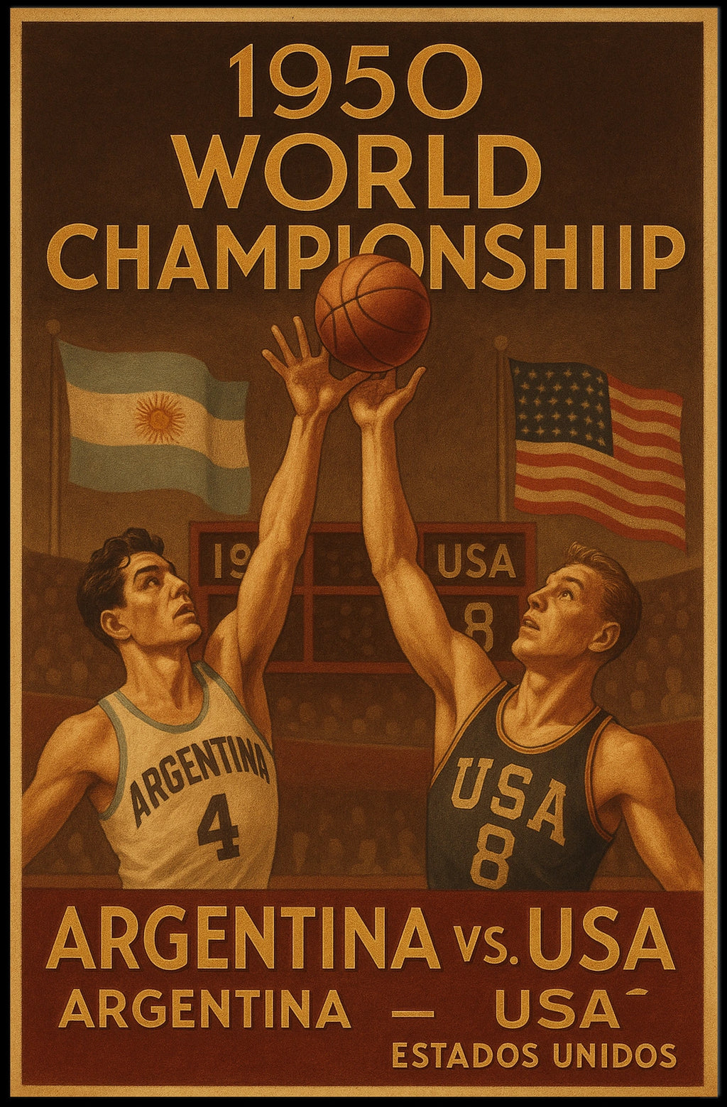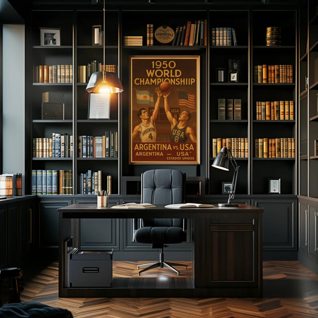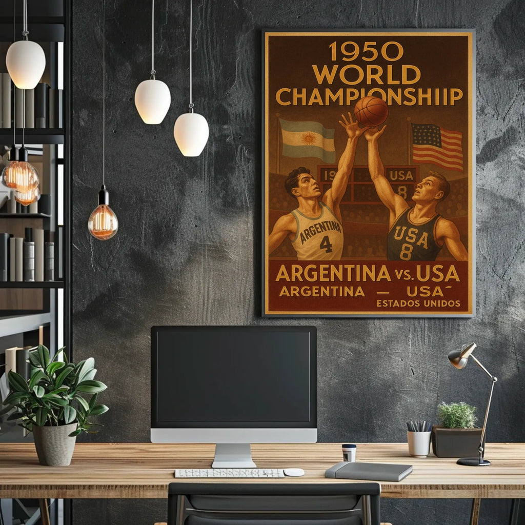 This poster captures the essence of 1950 World Championship Argentina vs. USA. Designed for decor lovers and wanderlust spirits, this art print adds charm to any room with visuals inspired by real-world scenery.