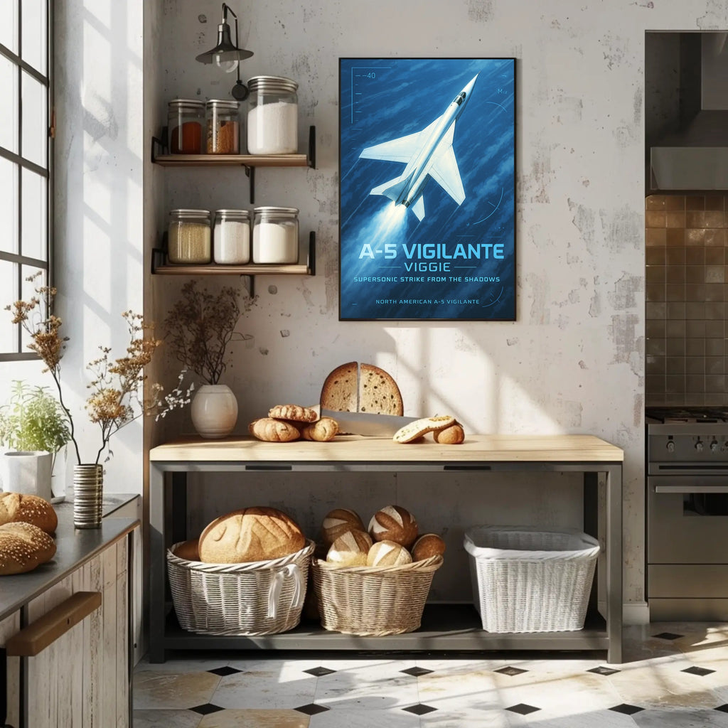 Bring supersonic history to your walls with the A-5 Vigilante Supersonic Strike Poster from PosterGoat — a striking, minimalist aviation print that pairs vintage military flair with modern graphic design.