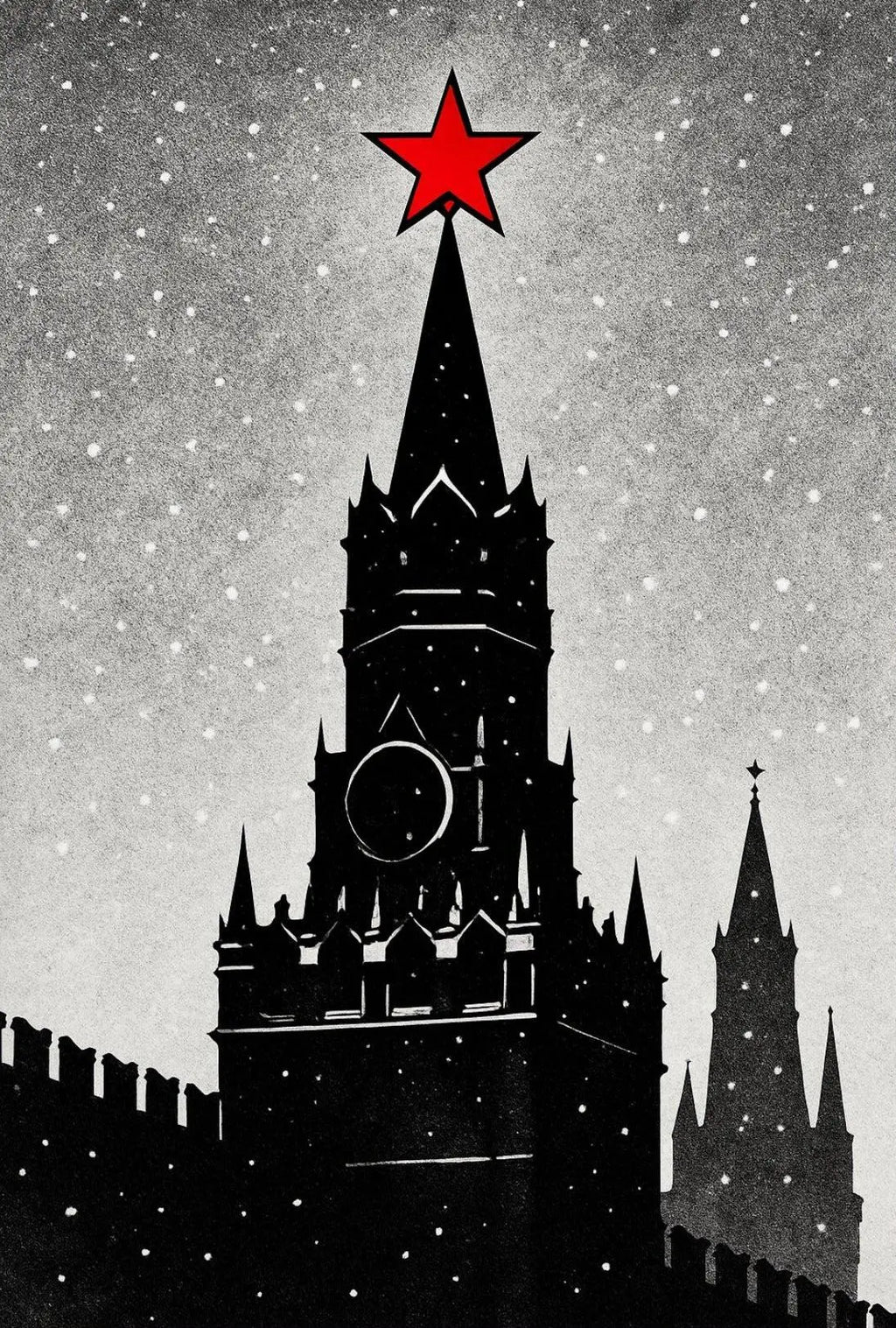 Bring bold, travel‑inspired style to your walls with this striking Black and White Clock Tower Illustration Poster with Red Star Decor from PosterGoat. A dramatic silhouette of a historic clock tower rises against a textured, snowy sky — its single red star crowning the spire for a minimalist yet eye‑catching focal point that suits modern and eclectic interiors alike.