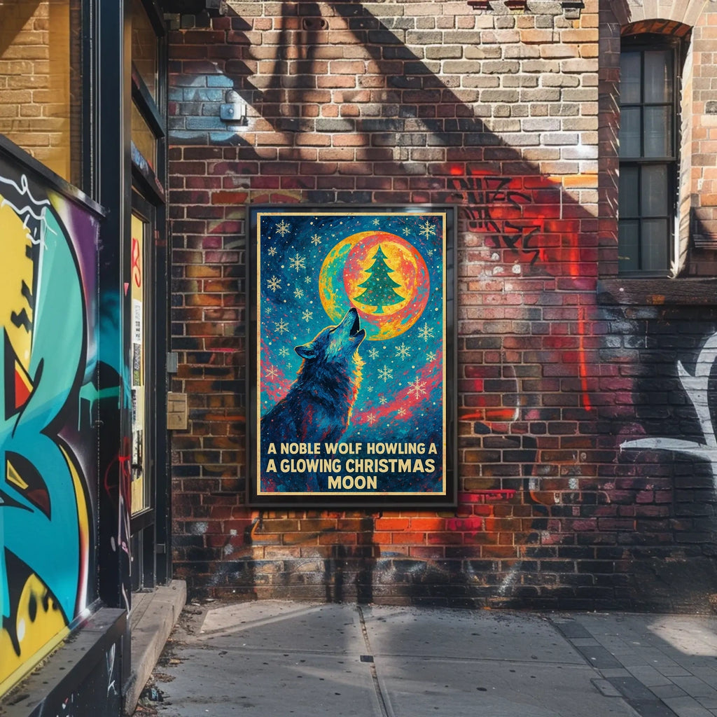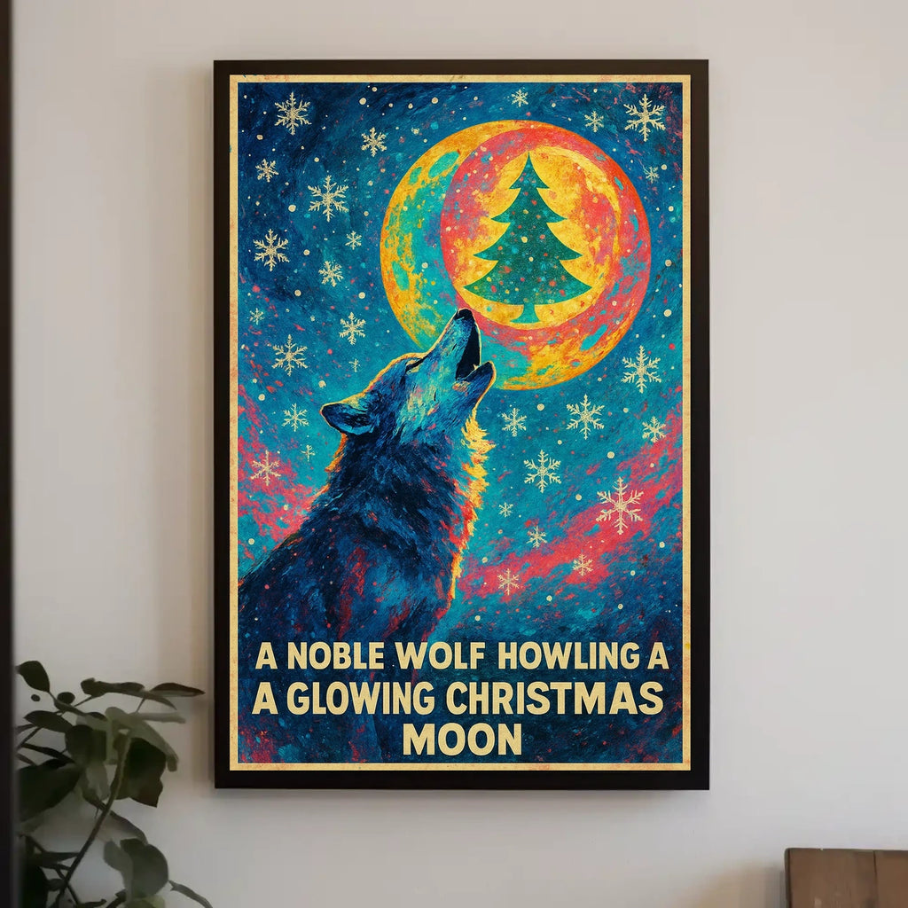 A Noble Wolf And A Glowing Christmas Poster captures the essence of a serene, snowy woodland scene where a noble wolf gazes under a glowing Christmas moon. Designed for decor lovers and wanderlust spirits, this art print adds charm to any room with visuals inspired by real-world scenery.