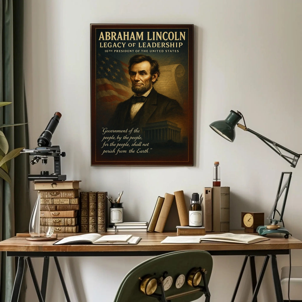 Honor the legacy of the 16th president with a wall-ready poster that blends historic appeal with wanderlust-inspired scenery. Designed for decor lovers and travelers at heart, this art print brings warmth, character, and a touch of Americana to any room.
