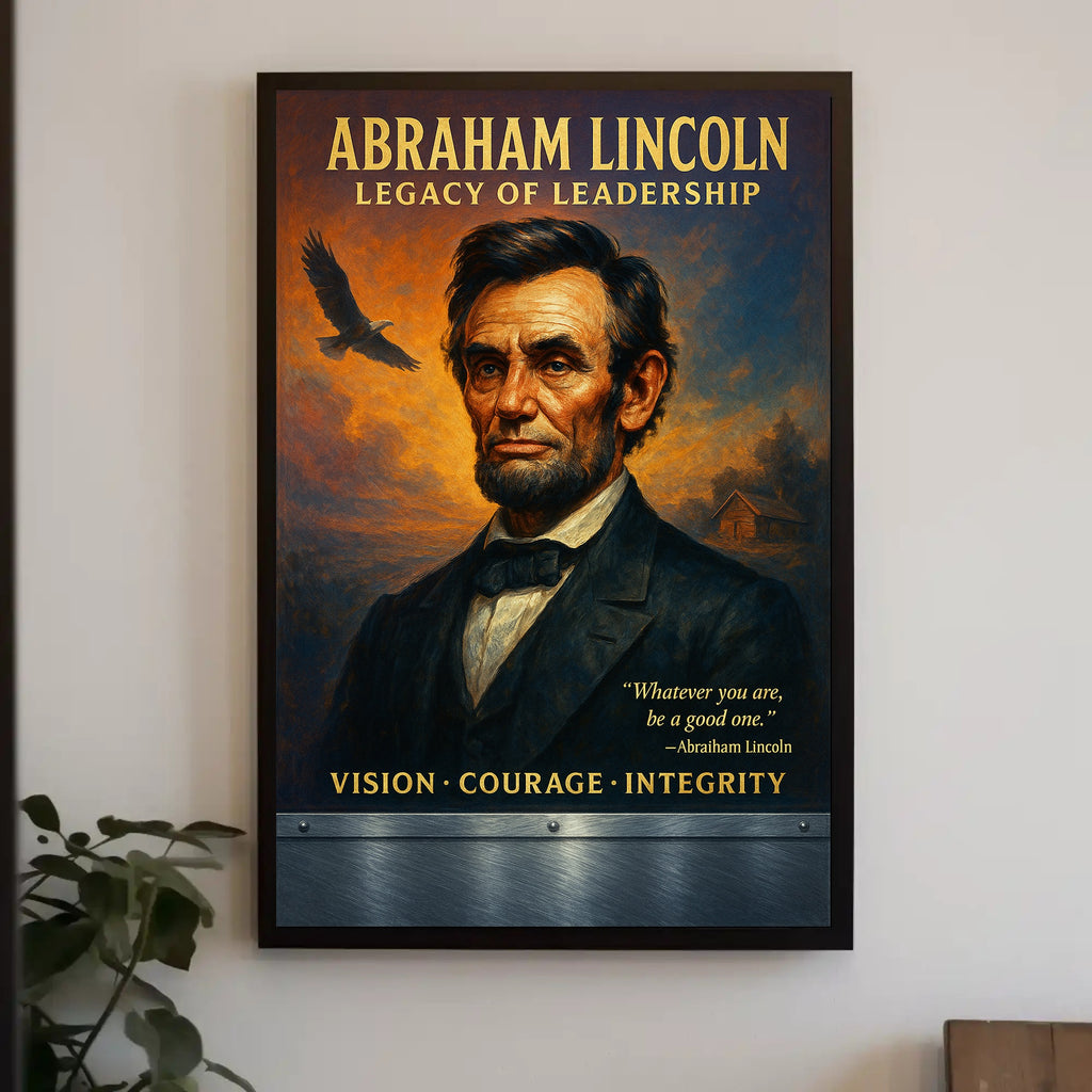 Perfect for historians, educators, leaders, and anyone who values iconic imagery and inspirational decor, this presidential poster makes a memorable focal point in any room. Add the Abraham Lincoln Leadership Portrait to your collection from PosterGoat today — bring vision, courage, and integrity to your walls.