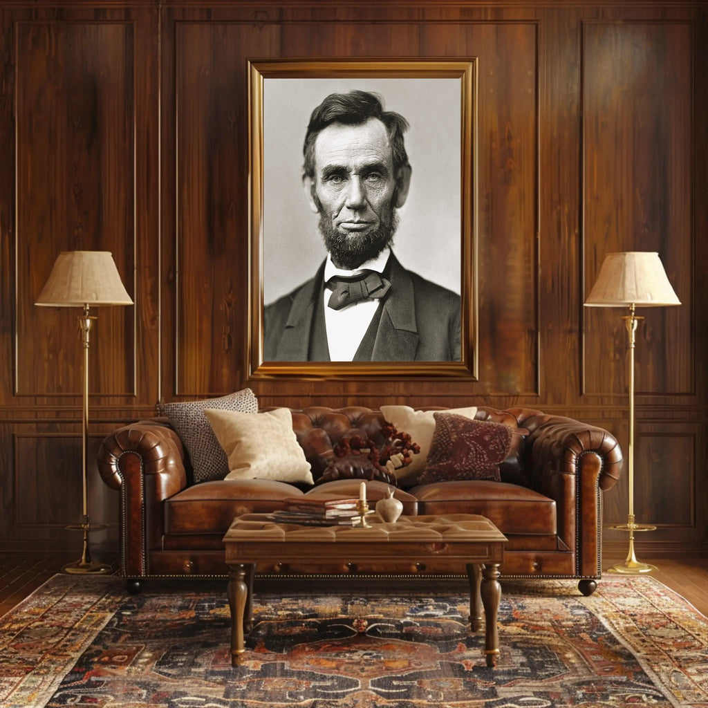 Elegant Presentation: The elegant drapery and formal portrait style reflect the sophistication of Lincoln's time, adding a touch of Victorian decor to your space.